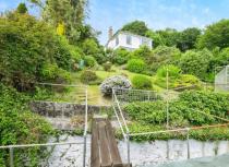 Walled courtyard style front gardens. Rear lawned garden with spectacular sea views, accessed via a pedestrian bridge from the rear of the property, with mature shrubs and a greenhouse.
