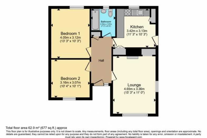 Entrance hall, lounge/diner, kitchen, two double bedrooms and family bathroom.