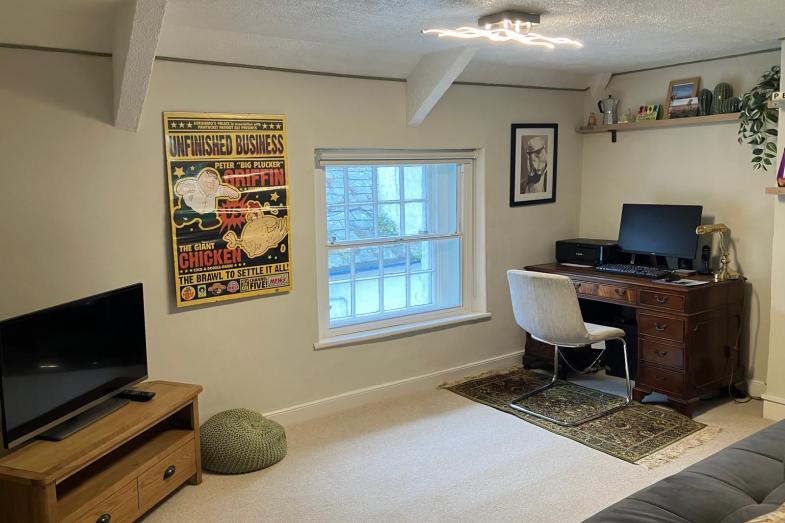 Open plan lounge/kitchen/diner, inner hallway and storage room/former bathroom.