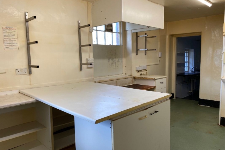 Entrance hall, restaurant and bar area, commercial kitchen and prep/wash room.