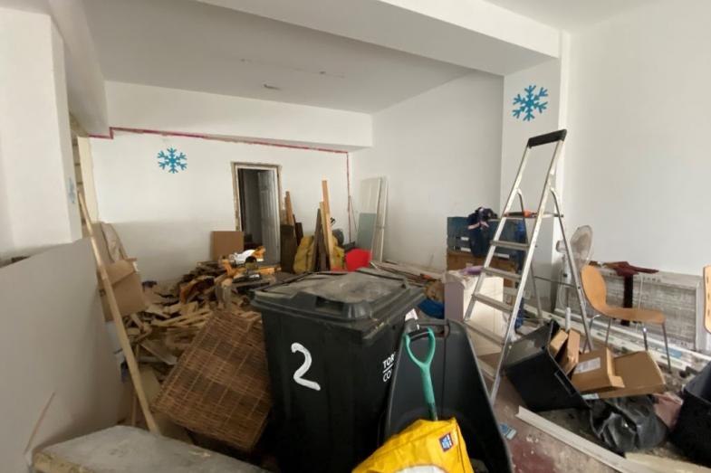 Private entrance with bin/cycle storage area off, sitting room and kitchen area, bedroom, bathroom and storage cupboard.