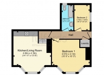 Entrance hall, lounge/kitchen/diner, two double bedrooms, bathroom and utility cupboard.